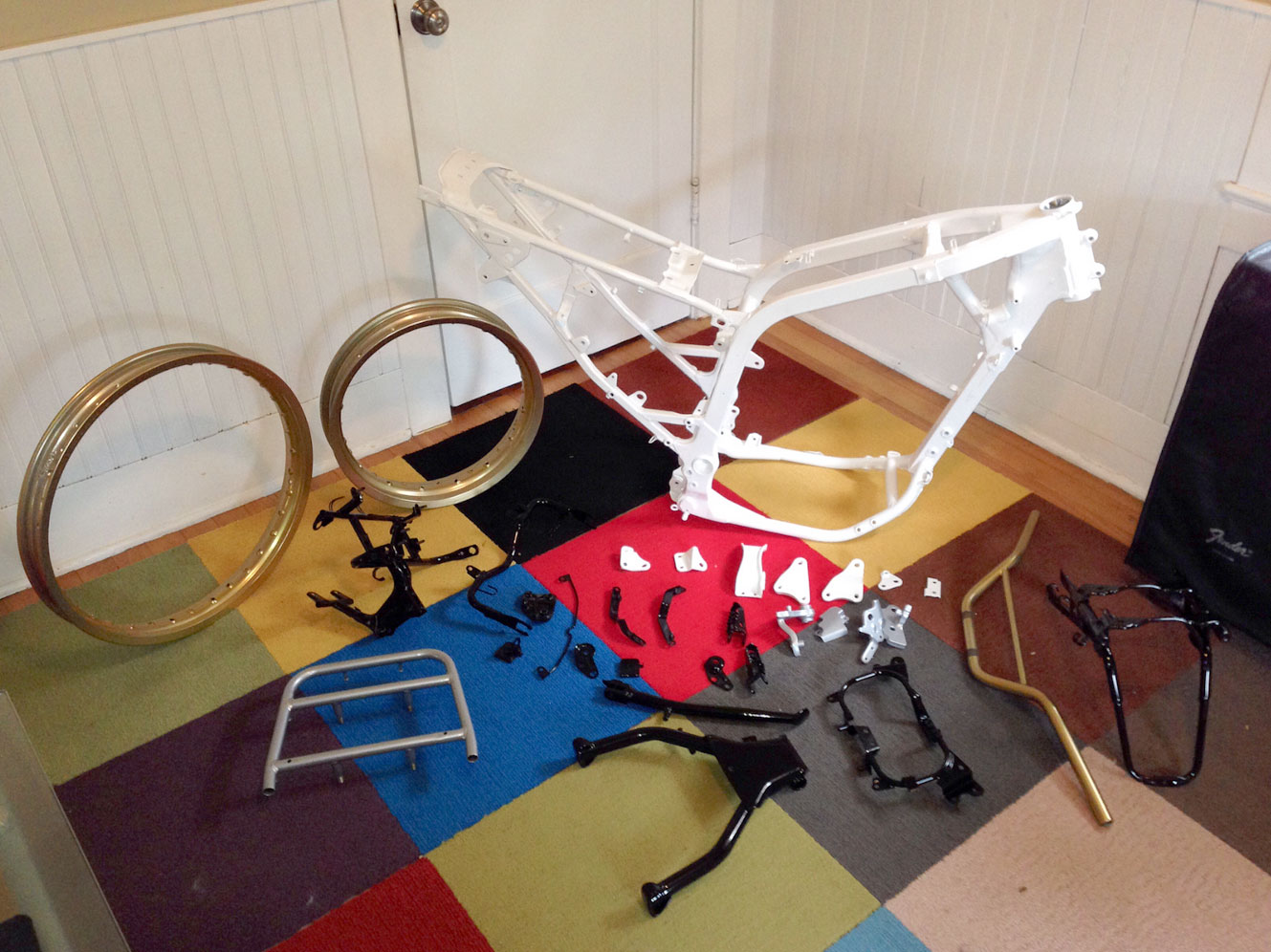 Despite being running condition, the bike did have 25 years of wear and tear. The tear-down revealed corrosion on the wheels and frame, cracks in the fairing and many expired parts. Finding NOS parts in the USA was sometimes easy (some parts are shared with USA bikes) and sometimes difficult. I eventually found parts in the UK, Italy, Germany, Austria and Japan. A world bike!