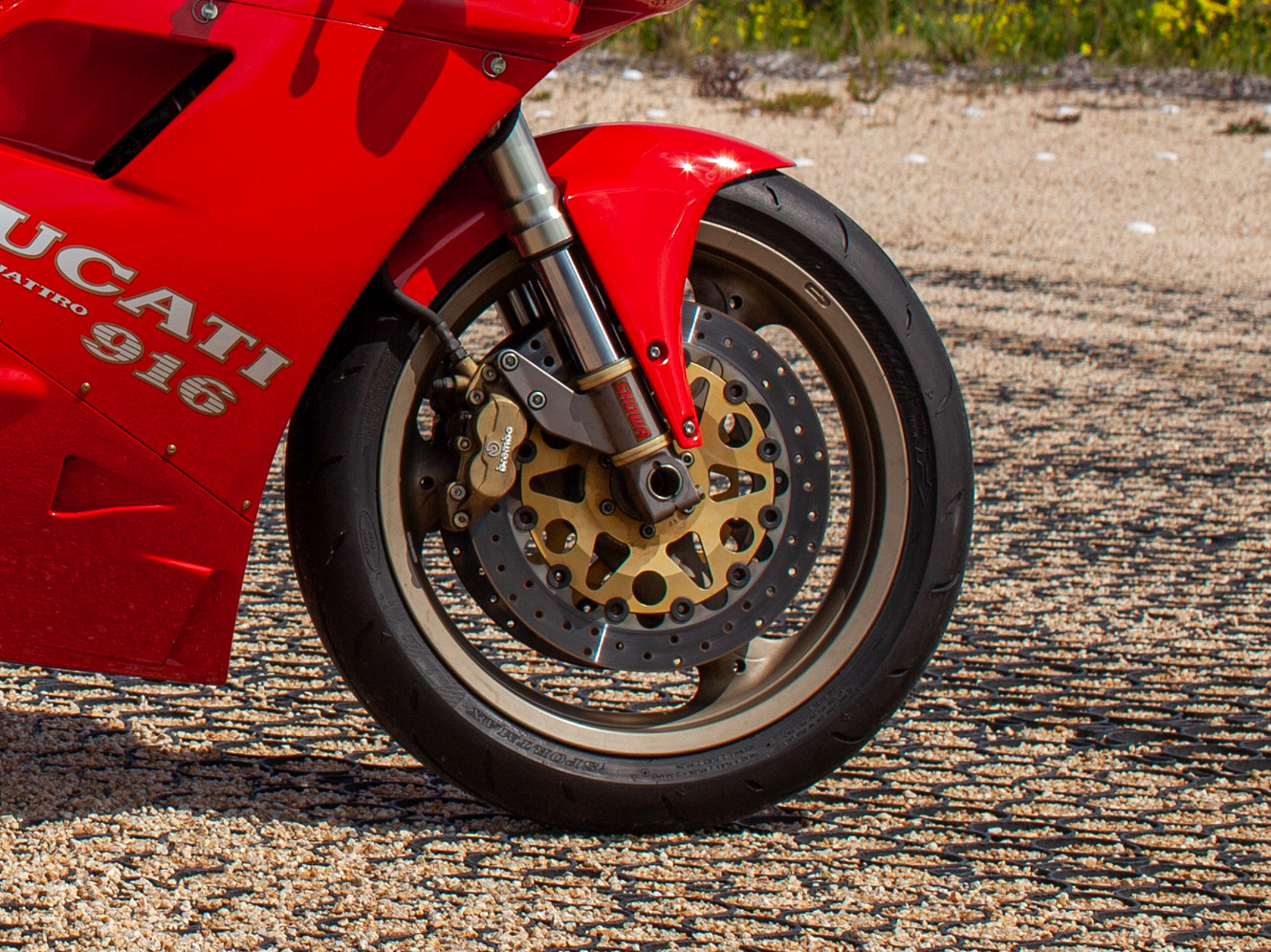 When the Ducati 916 prototype was unveiled in 1993 it became a sensation: proof that Italian design was alive and well in the motorcycle world. Every motorcycle magazine put the bike on its cover. Celebrities wanted to be photographed with it. But the 916 got perhaps the most attention on the track. The 916 race platform would go on to win the World Superbike Championship in 1994, 1995, 1996 and 1998 including 27 wins from Carl Fogarty and seven wins from Troy Corser.